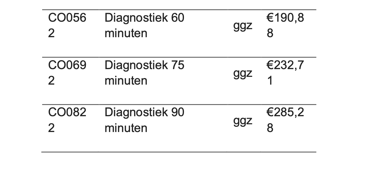 Tarieven intakegesprekken en diagnostiek 2025